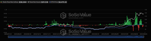 Приплив/відтік капіталу в американському секторі спотових Ethereum-ETF щодня. Джерело: SoSoValue.