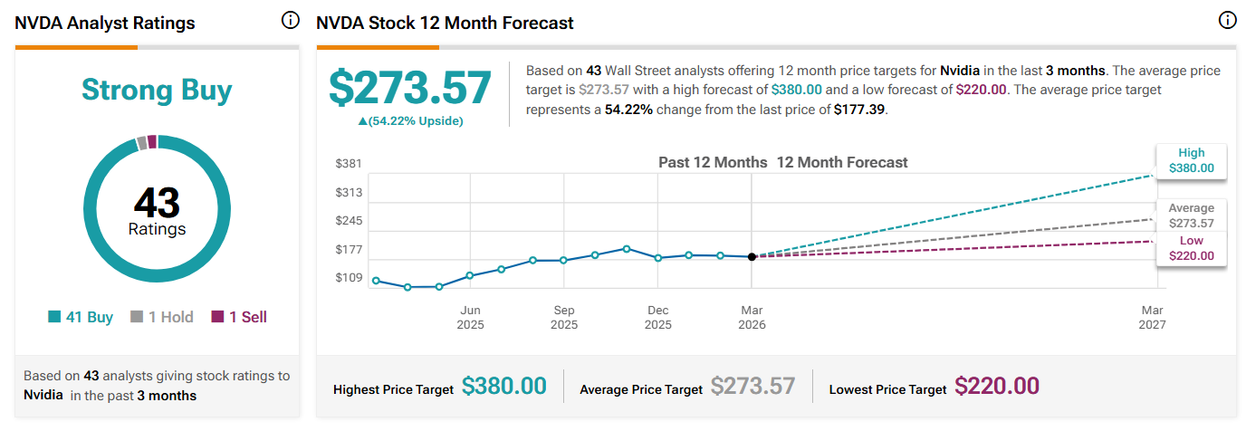 Якщо віддалятися від реальності, останнє підвищення ціни акцій NVDA є лише останньою позитивною подією в тому, що можна охарактеризувати як потік позитиву на Уолл-стріт. Зокрема, акції Nvidia загалом вважаються «сильною покупкою» та мають середній 12-місячний прогноз ціни на рівні $273,57 – що більш ніж на 50% вище ціни на момент публікації в $177,39.
