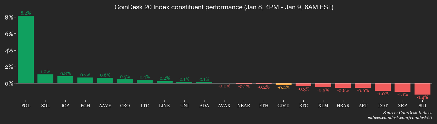 Криптовалютному ринку бракує чіткого спрямованого ухилу напередодні цих ключових подій, при цьому біткойн BTC $90 182,72 торгується поблизу $90 500, що лише на 0,2% більше за 24 години. Ціни впали більш ніж на 0,5% з початку азійських торгових годин.