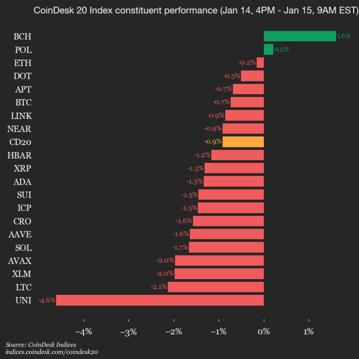 CoinDesk Indices представляє своє щоденне оновлення ринку, висвітлюючи результати лідерів та відстаючих в індексі CoinDesk 20.