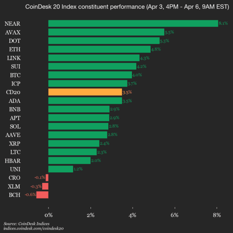 Оновлення продуктивності CoinDesk 20: протокол NEAR (NEAR) зріс на 8,1% за вихідні