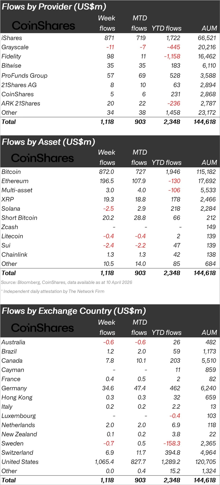 «Був зафіксований приплив у розмірі 1,1 мільярда доларів у криптовалютні інвестиційні продукти. Це був найсильніший приплив з січня, який був підтриманий нижчими, ніж очікувалося, даними про інфляцію та покращеною геополітичною стабільністю».