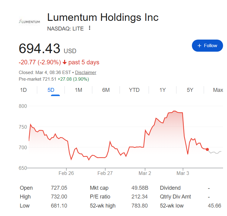 В інших випадках перегляд Нідхема демонструє зростаючий розрив між впевненістю Волл-стріт та сумнівами ринку загалом. Хоча акції LITE значно зросли після оголошення про угоду, на сесії 3 березня відбувся значний відкат, який знову ж таки частково змінився під час передринкового зростання 4 березня.