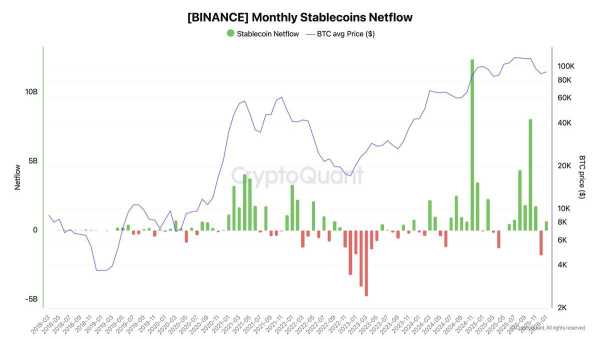 Аналітик під псевдонімом Darkfost вивчив рух капіталу Binance за останні кілька місяців. За його звітом, жовтень став винятковим періодом для припливу ліквідності. У той місяць чистий обсяг стейблкоїнів, що надійшли, перевищив $8 млрд. Експерт зазначив, що такі показники спостерігаються рідко. Однією з причин стали ринкові можливості після корекції 10 жовтня.