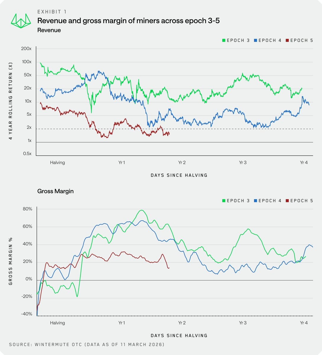 Дохід від біткойна та валова маржа значно знизилися порівняно з попередніми циклами (епохами). Джерело: Wintermute