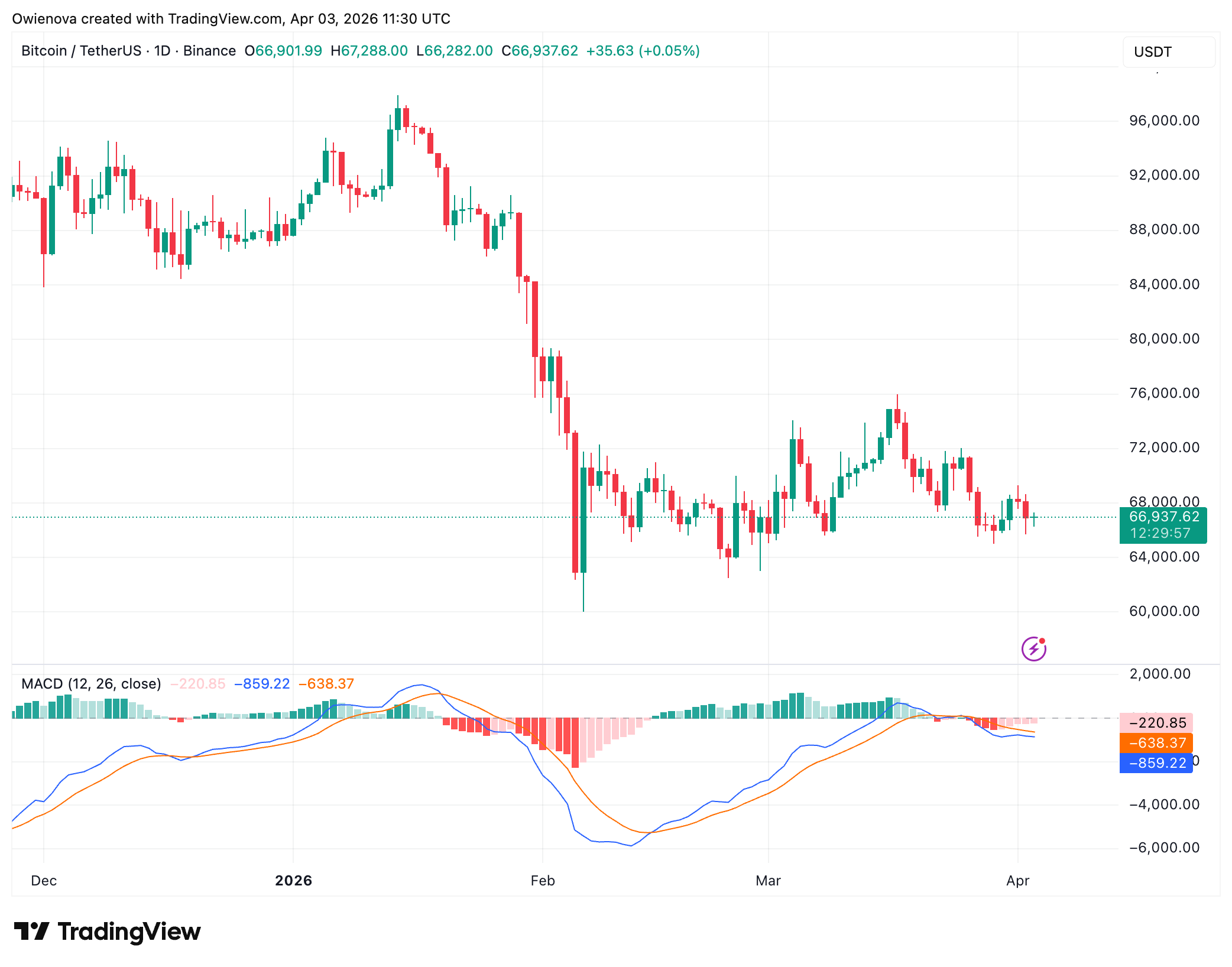 $BTC торгується на рівні $66 937 на одноденному графіку | Джерело: BTCUSDT на Tradingview.com