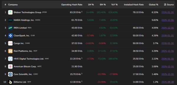 До запуску нових машин поточний операційний хешрейт підприємства оцінюється у 21,9 EH/s за встановлених 25 EH/s. Це дає змогу компанії утримувати 2,06% від усього світового обчислювального потенціалу мережі.