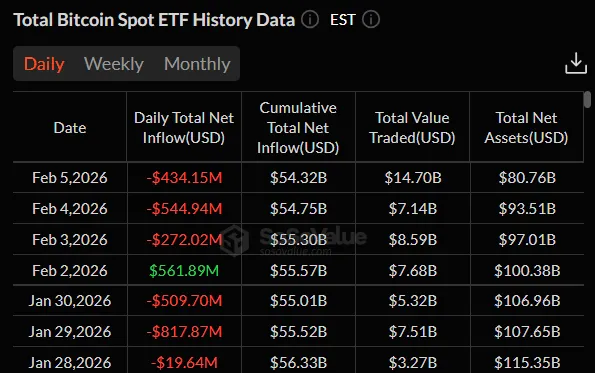 Спотові біткоїн-ETF показують відтік капіталу: 3 і 4 лютого фонди втратили понад $900 млн.