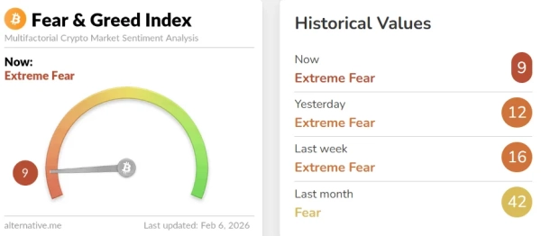 Популярний індикатор настроїв опустився до 9 пунктів («надзвичайний страх»). Це найнижчі показники з моменту запуску метрики в середині 2023 року.