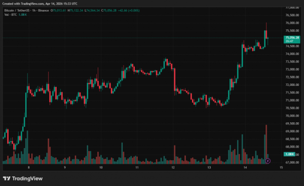На момент написання перша криптовалюта торгується близько $75 200 — максимум з початку лютого. За останню добу котирування монети виросли на 4,5%.