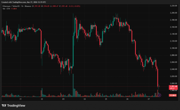 На момент написання, друга за капіталізацією криптовалюта торгується поблизу позначки $2000. За останню добу вартість активу зменшилась на 3,7%.