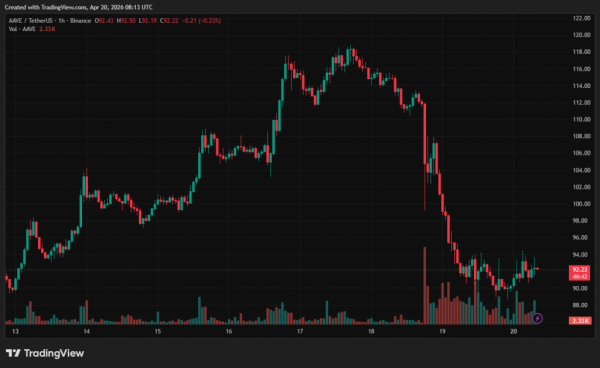 Ціна токена AAVE обвалилася більш ніж на 15% — до $91. Ринкова капіталізація активу знизилася з $1,8 млрд до $1,3 млрд.