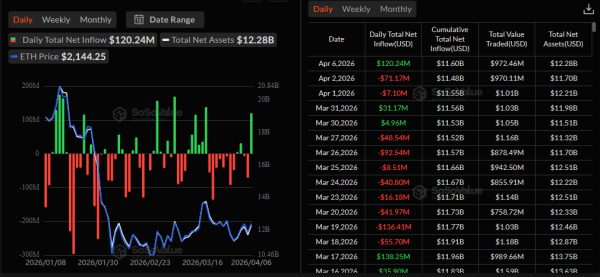 Спотові Ethereum-фонди також відреагували на поліпшення настроїв, додавши $120 млн. Раніше, протягом трьох місяців поспіль, ці інструменти показували від’ємні значення — сукупний відтік склав $770 млн.