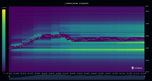 У CoinGlass зареєстрували значне скупчення ордерів на продаж у межах $72 450–75 000. Загальний розмір коротких позицій тут становить близько $2 млрд.