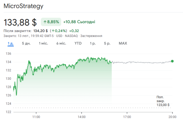 Акції MSTR завершили торговий тиждень підйомом на 8,8%, до $133,88. Папери торгуються на 70% нижче історичного максимуму в $456, зафіксованого в середині липня. Динаміка котирувань співвідноситься зі спадом біткоїна на 45% від жовтневого піку.