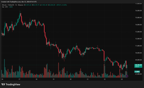На момент написання біткоїн торгується поблизу $68 300. За останню добу ціна активу знизилась на 1,1%, за тиждень — майже на 8%.