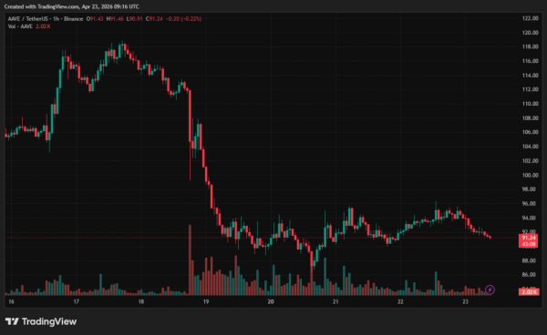 Рідний токен Aave зберігає спадний тренд. Протягом минулого тижня котирування AAVE впали на 13,8%. На момент написання статті актив торгується біля позначки $91,2.