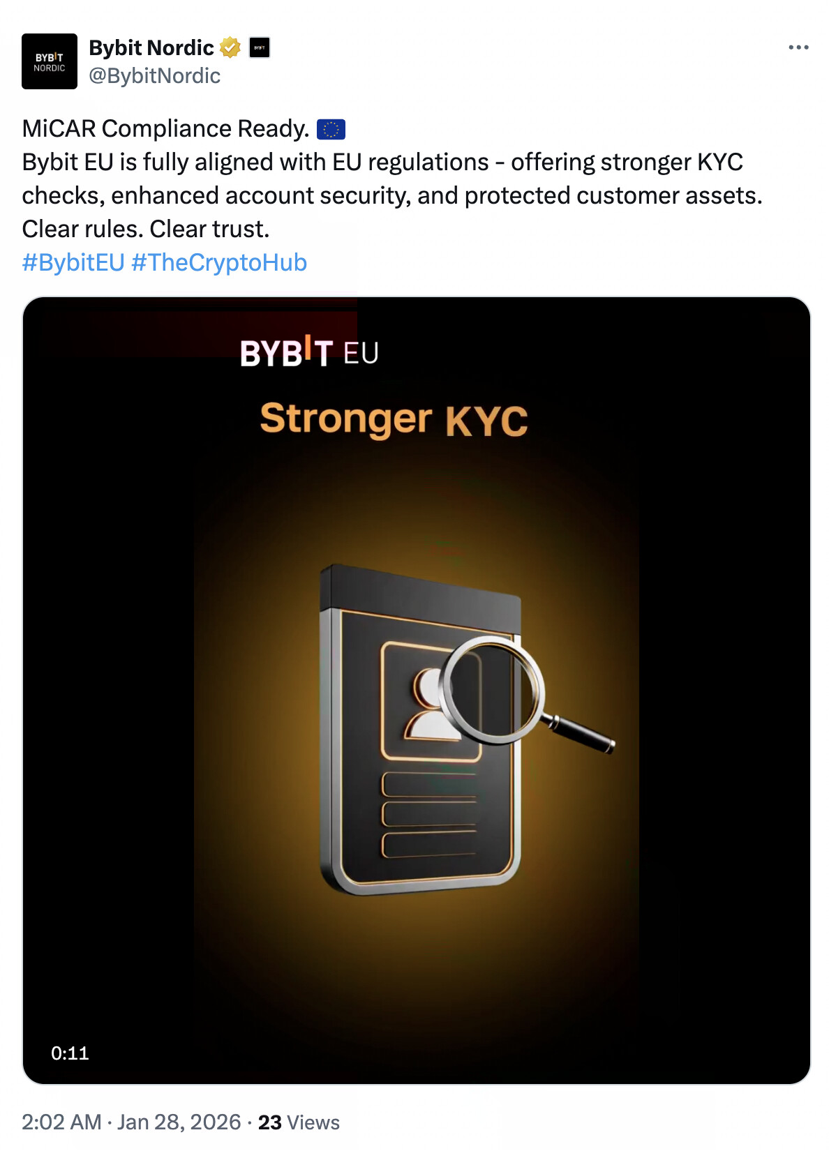 Bybit вже згадував про свою підвищену відповідність вимогам ЄС завдяки останній повній сертифікації MiCAR.