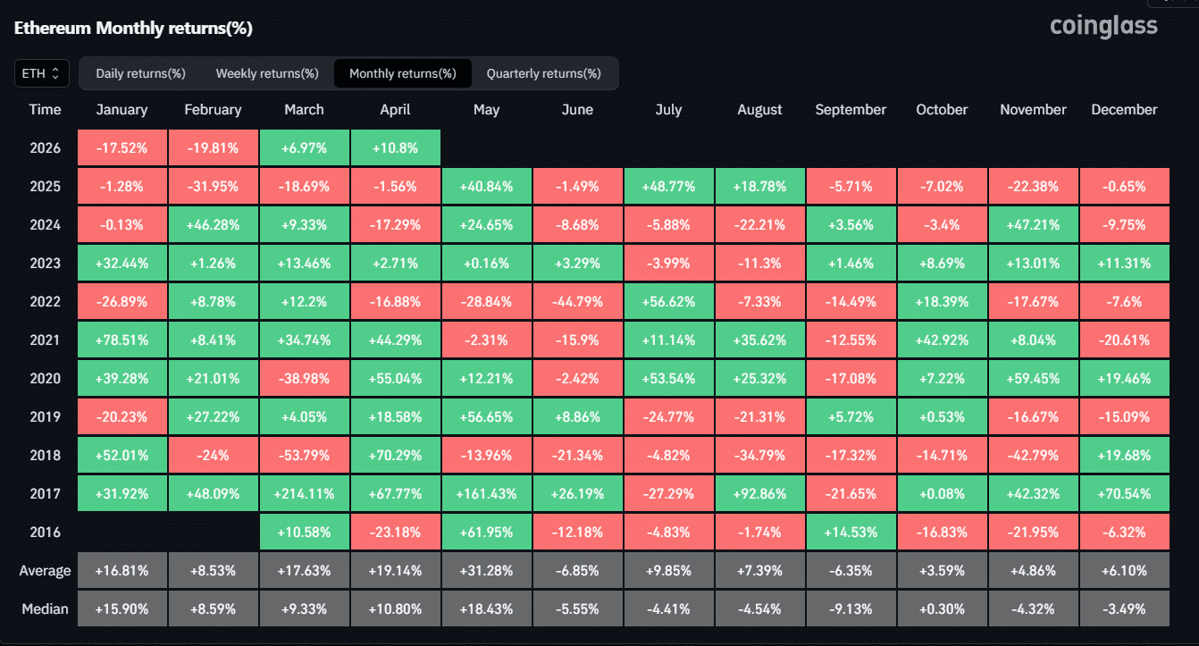 Але вплив виходить за рамки показників у блокчейні. Як видно з діаграми нижче, березень став єдиним місяцем зростання для Ethereum у першому кварталі, коли $ETH забезпечив щомісячну рентабельність інвестицій у розмірі 6,97%.