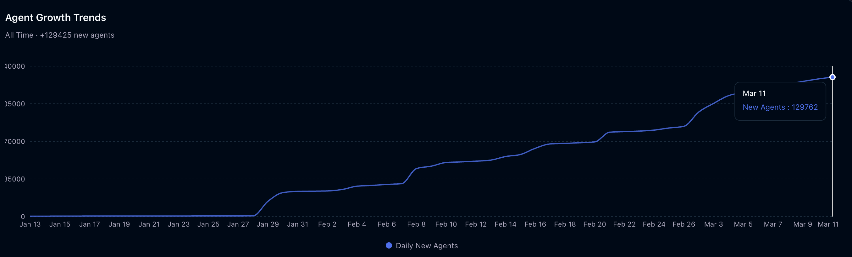 Загальна кількість агентів у мережі, з січня 2026 року по теперішній час. Джерело: 8004scan