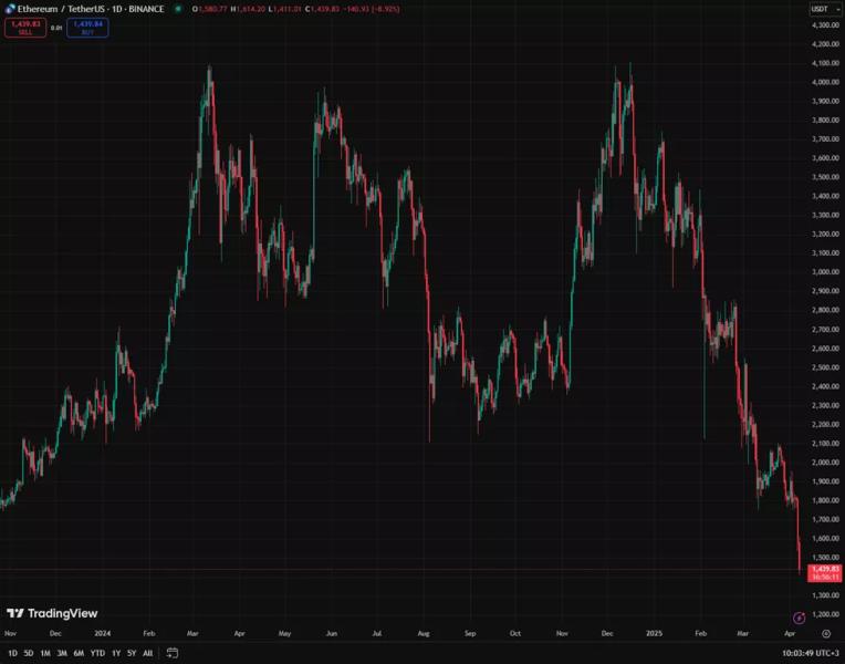 Поштовхом до цього стало зниження ціни другої за величиною криптовалюти за ринковою капіталізацією, яка впала на 12,5% увечері 6 квітня. Наступного дня ціни впали ще на 9%, опустившись нижче рівня 1500 доларів.